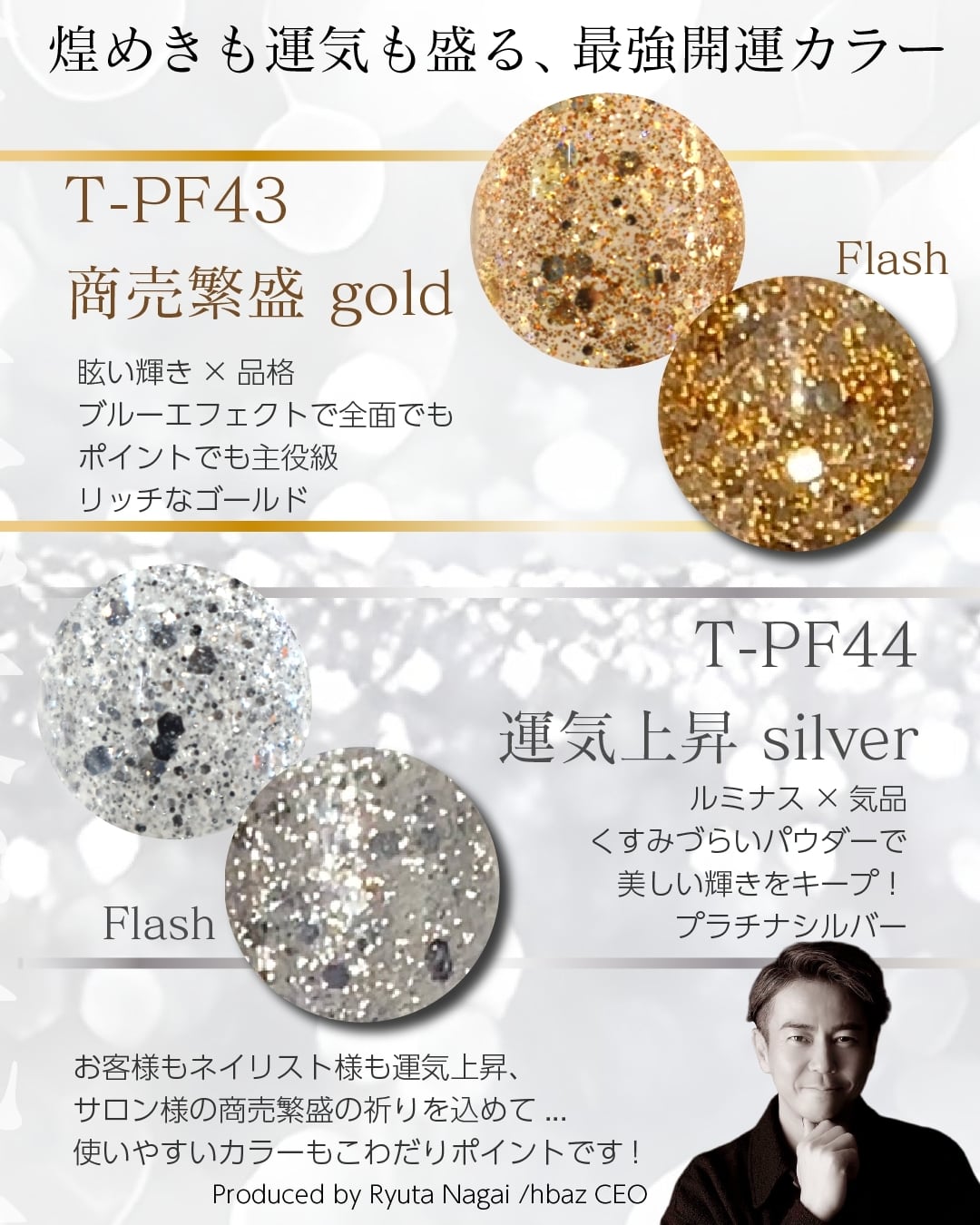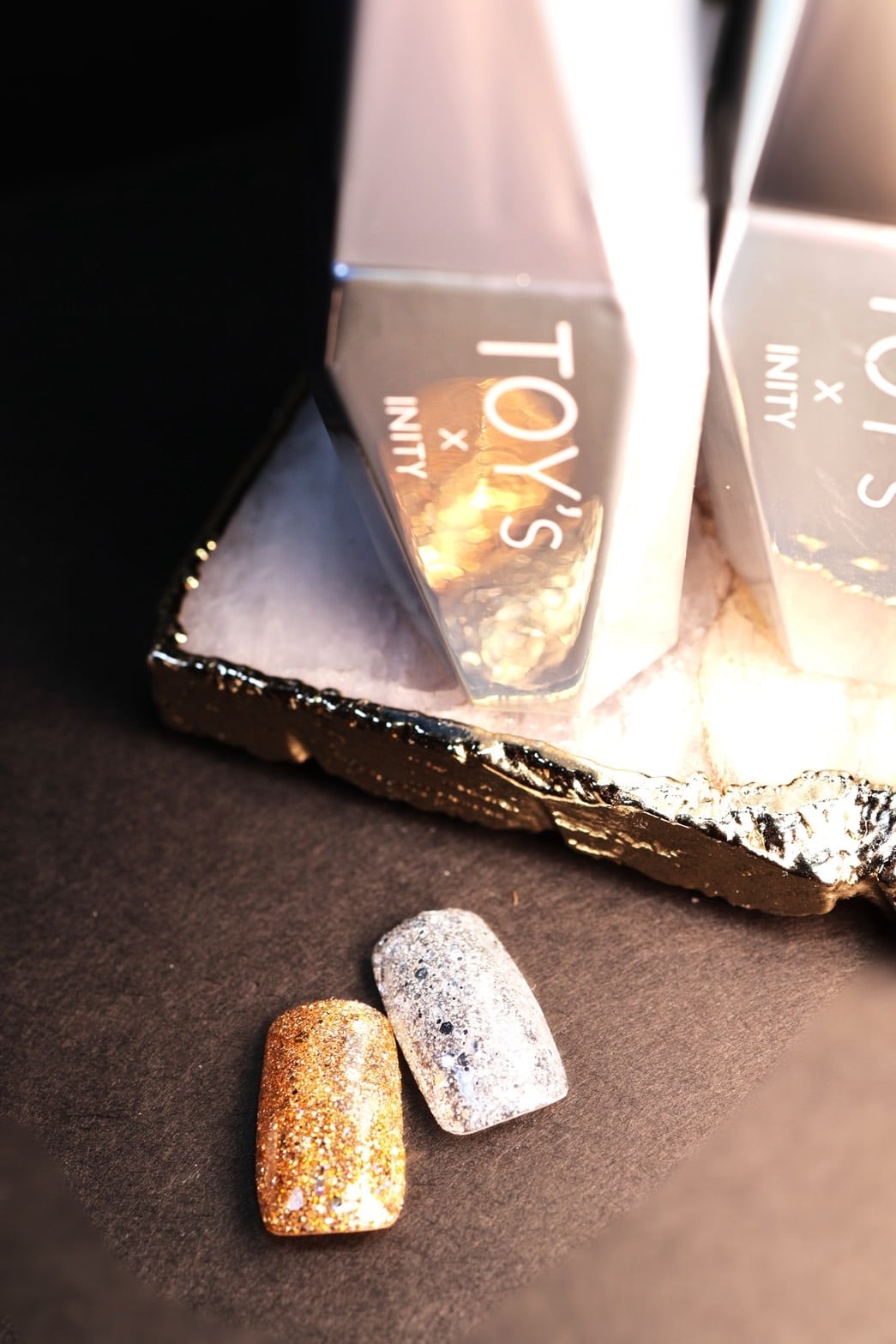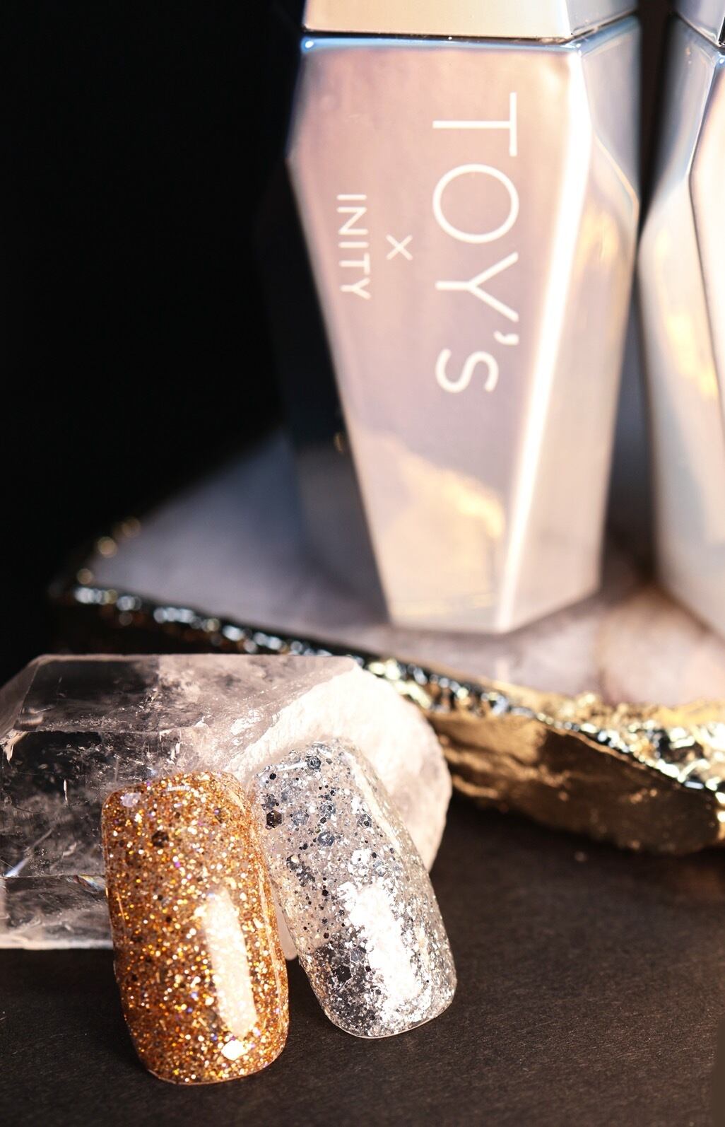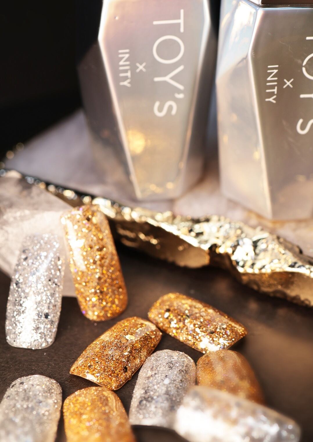 ゴールドのホロ、ブルーのエフェクト入りフラッシュジェル
